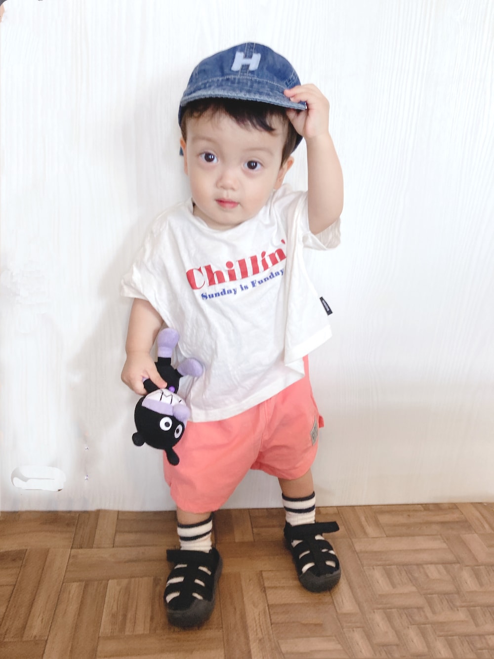 見ていただきありがとうございます♡ いいね♡お気に入り📂コメント✍️フォロー➕全部嬉しいです🙈💗 #キャップ 保育園着にプラスしてちょっとスーパーへ買い物〜な日。 最近アンパンマンにはまってる👶ですが、 中でもバイキンマンのぬいぐるみがいちばんのお気に入りのようで🤣💦 気づくと握りしめています🤣