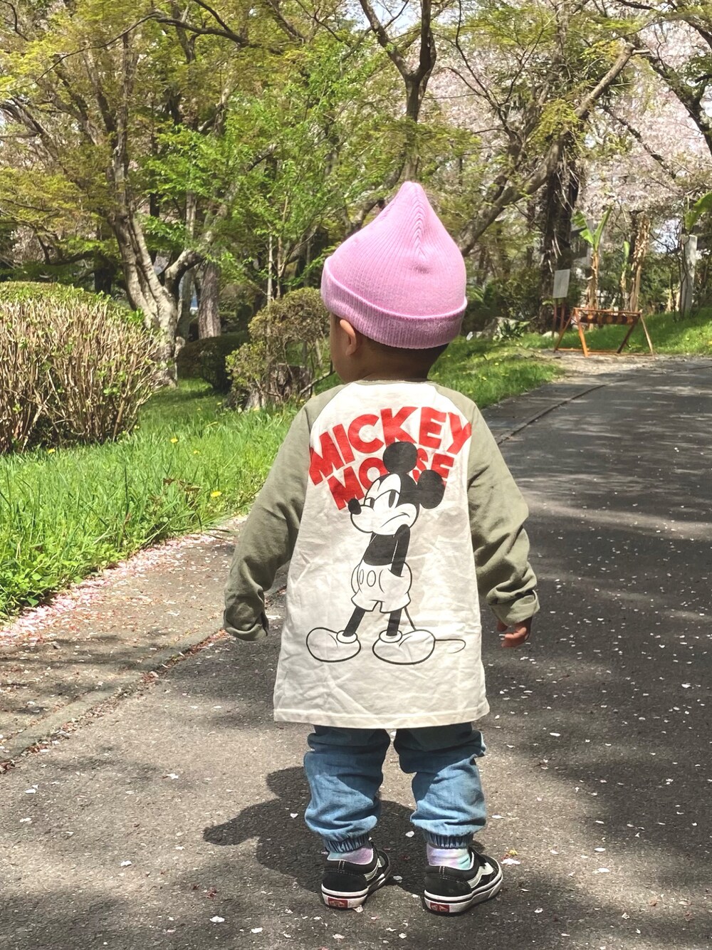 見ていただきありがとうございます♡ いいね♡お気に入り📂コメント✍️フォロー➕どれも嬉しいです🙈💗 さくらもちコーデ🌸💚🍡 でお花見してきました🌸🌸🌸 ちょこちょこ動き回ってるから、すれ違う人たちにミッキー🐭がんばれー📣 て言われてた人です👶ww バクプリどーん🐭なロンTのおかげです 🤣ww