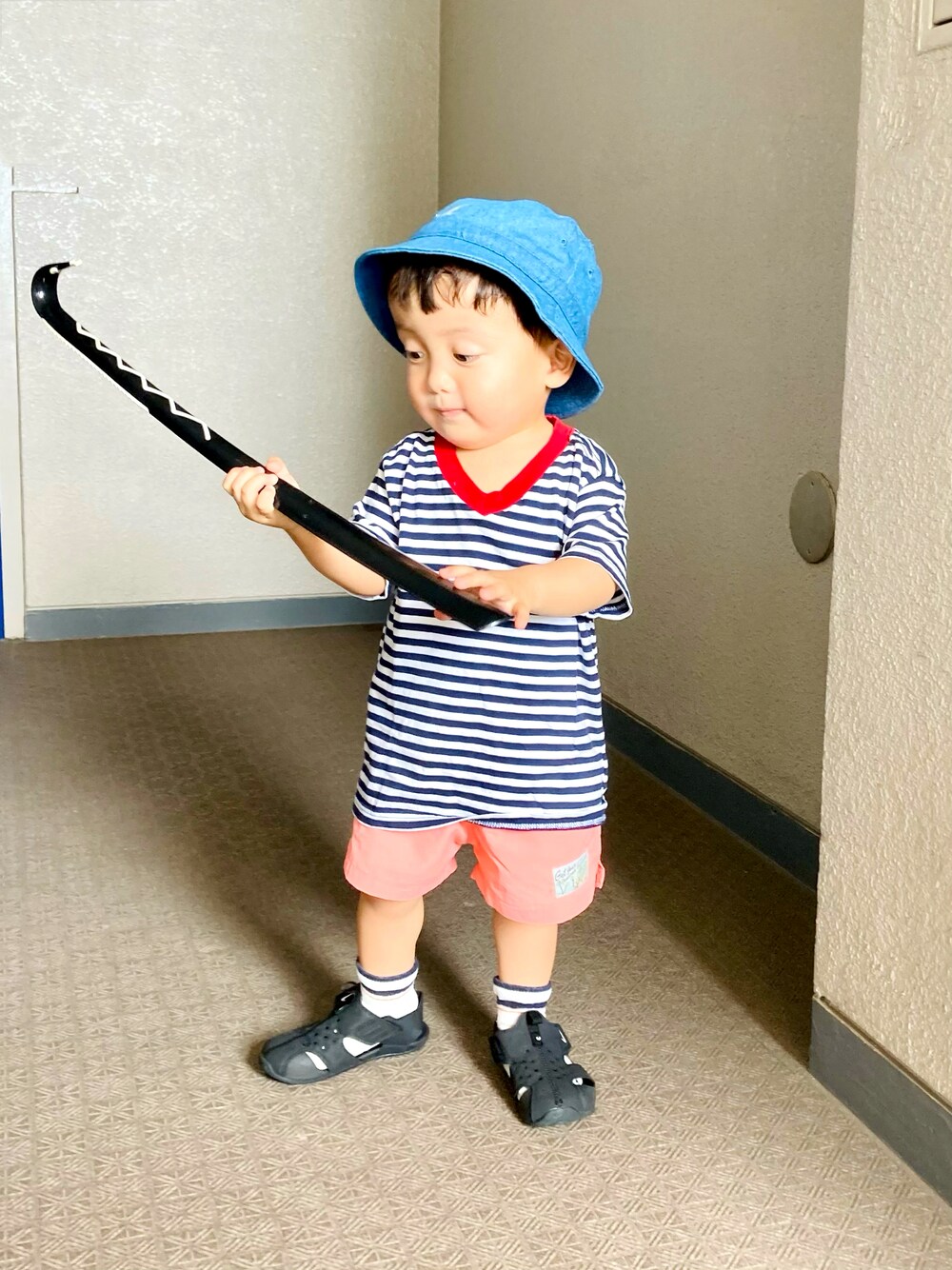 見ていただきありがとうございます♡ いいね♡お気に入り📂コメント✍️フォロー➕全部嬉しいです🙈💗 朝から公園で遊んだ日のコーデ。 古着で見つけたラルフのTシャツ❤️ 可愛くてお気に入り😊 玄関出るときに靴べら持ってご満悦で遊んでました😅💦 楽しそうで何より😅😅😅