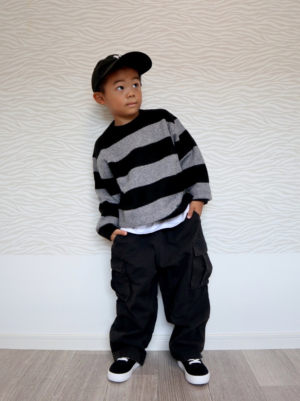 セーターで一気に秋コーデ♡ モノトーンで大人っぽく、 でもPAIRMANON STREETのパンツで ストリート感もプラス!! カッコいい男の子コーデの出来上がり♡ 👦🏻105cm(4y9m)