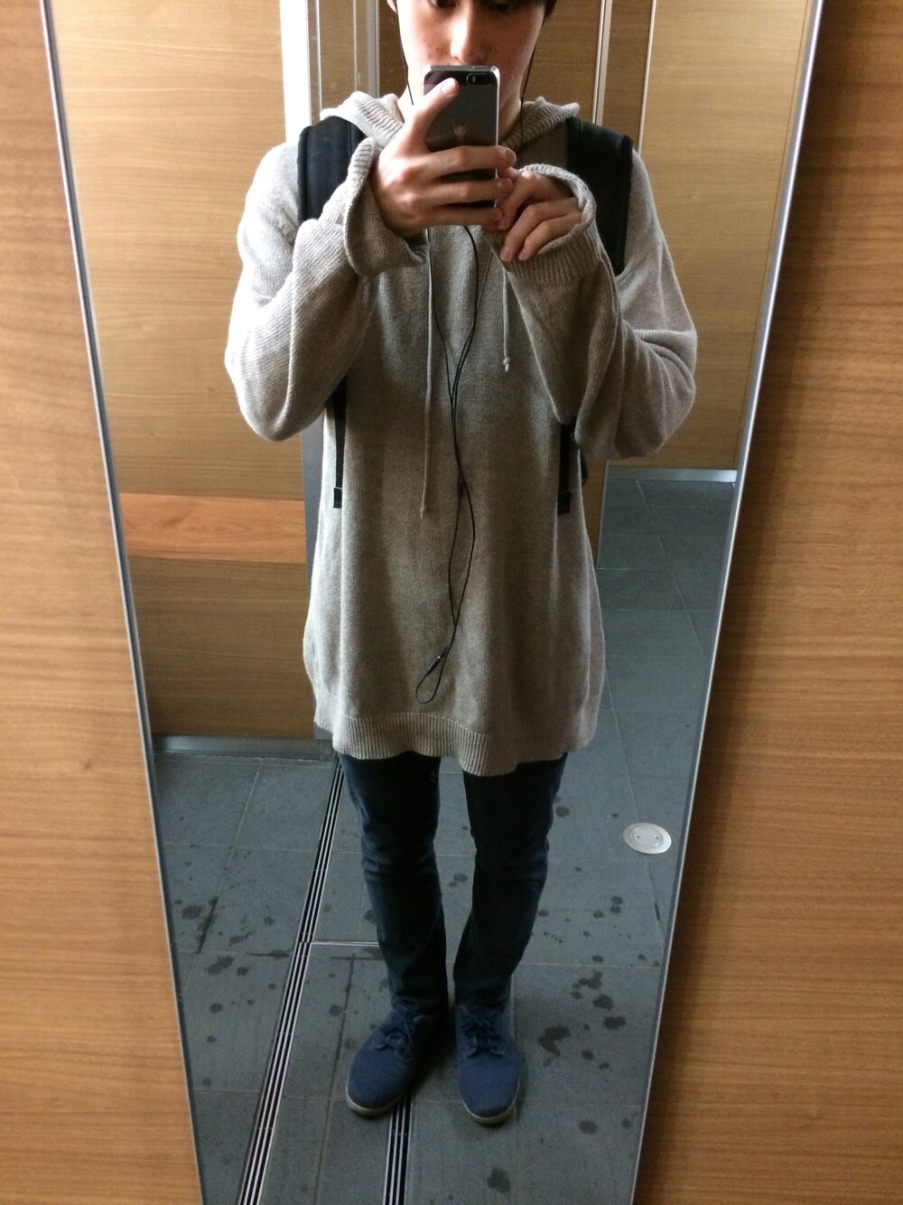 ユーズドのゆるゆるのニットパーカー 薄手涼しい 彼女さんに細身のパンツ履いてほしいて 言われたからとりあえず履いてみた