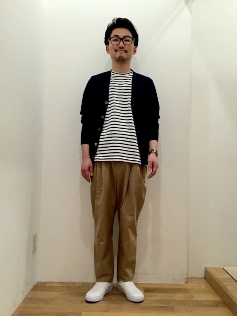 「MORRIS&SONS」のカーディガンとパンツを使ってシンプルにコーディネートしました。どちらも着心地、シルエットともに非常に良いのでオススメです!中に着た「AURALEE」のカットソーもアメリカの超長綿であるスーピマコットンを表糸、中糸、裏糸に贅沢に使用した非常に柔らかく着やすいアイテムです。是非店頭でお試し下さい!