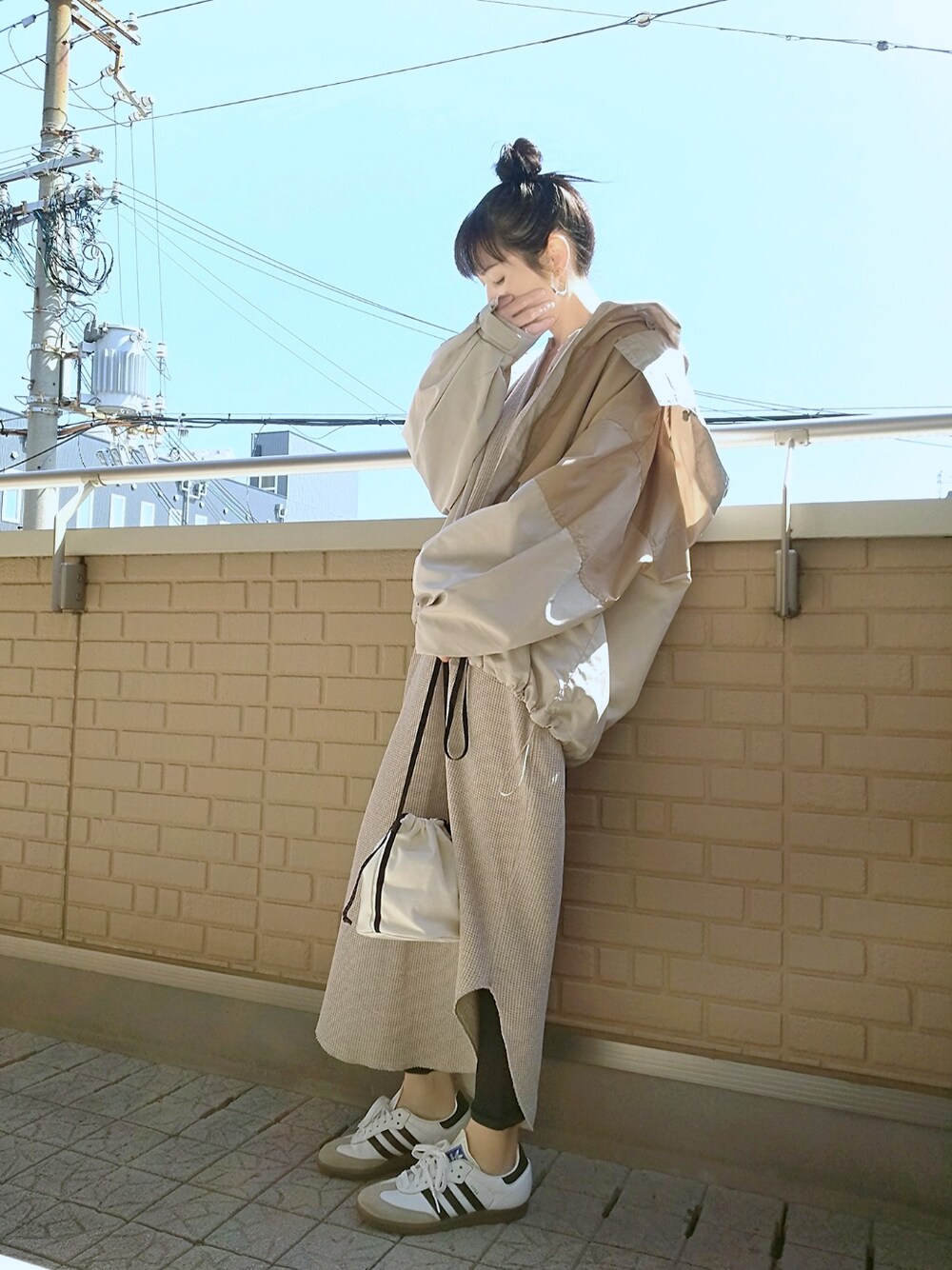 ベージュ×ベージュ マキシ丈のワッフルスリットワンピにバイカラーのナイロンジャケをゆるっと抜き襟 ちょっと風が冷たい時に羽織るのにナイロンジャケはかなり重宝 先週行った隠れ家的と言うかホントに隠れ家なカフェ(小窓) ジャズが流れる静かな店内で頂いたのは氷なしアイスコーヒーのマザグラン(小窓) 見た目も一口目もカクテル?!かと思っちゃうぐらいな不思議なコーヒーなんだけど、これがスッゴく美味しいʕ'ڡ'ʔ♪