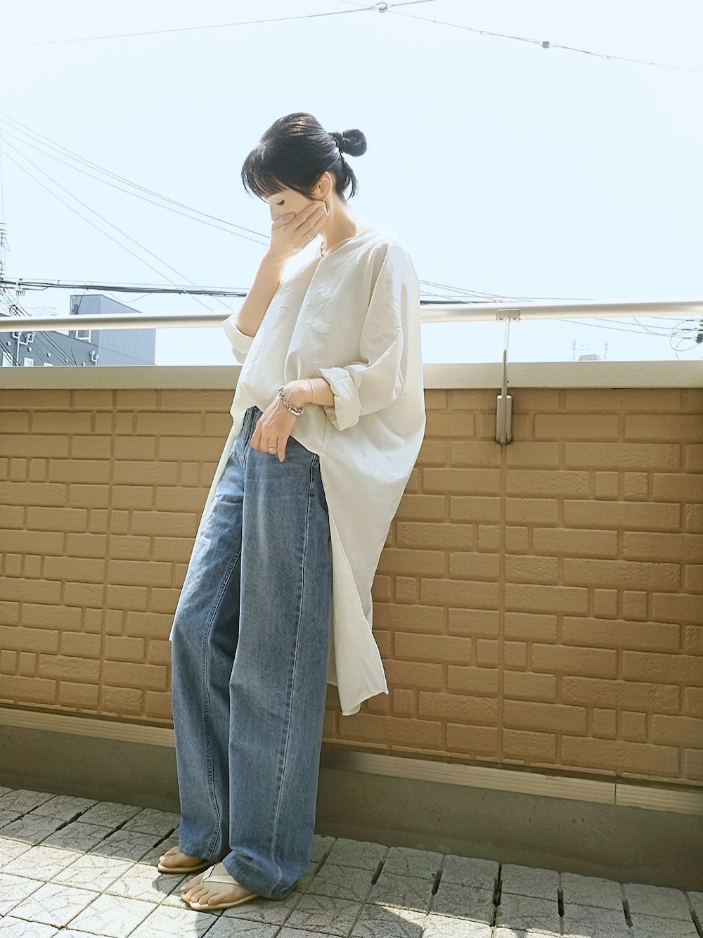 スリットトップス×ハイウエストデニム 善後アシンメでスリットの入ったトップスはふわっと軽くてデコルテが綺麗に見えるVネック ゆるシルエットなストレートデニムでブラウジング+腕まくりしてピアスとブレスレットは白合わせ 手作りティラミス(小窓) 昨日が誕生日だった旦那にティラミスをせっせと作ってみた(「・ω・)「