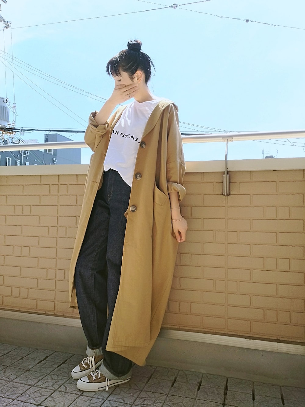 チェスターコート×カーブデニム シルエットがかわいいのにそのかわいさを全く見せれてないマキシ丈のチェスターコートはルーズに腕まくり カーブデニムは一折りだけロールアップしてワーク感+ アタリとハズレ(小窓) アタリはシャインマスカットのタルトにいちじくソースがかかったレアチーズ ハズレはタピオカ入りのどら焼きw アールグレー餡が絶妙に美味しくない」(。Д。」)