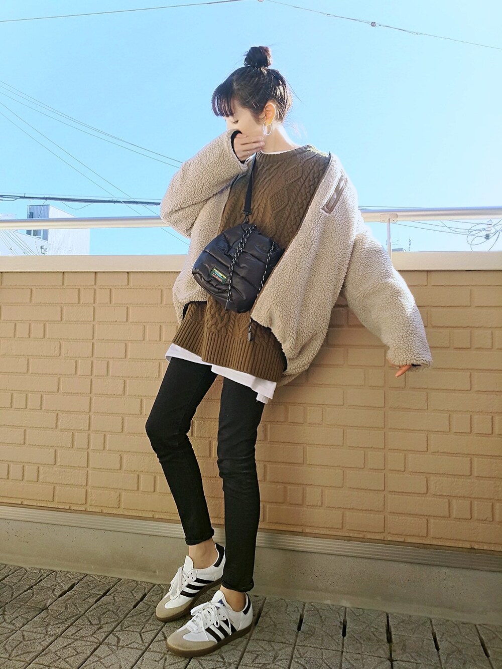 ボアブルゾン×ケーブルニット ベージュのボアブルゾンはゆる~く抜き襟で羽織り カーキのケーブルニットは白Tとレイヤード 今年もまた初物が届いた(小窓) 身がいっぱいの大きなオスのズワイガニも美味しいけど小さくても内子がたっぷりなメスの香箱の方が好きw 届いたその日の夜に美味しく頂いたʕ'ڡ'ʔ