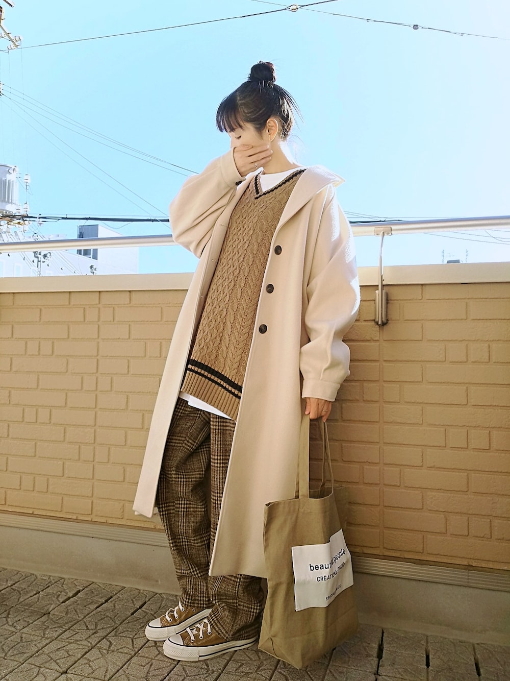 k(ani)のステンカラーコート「バックスリットコート」を使ったコーディネート