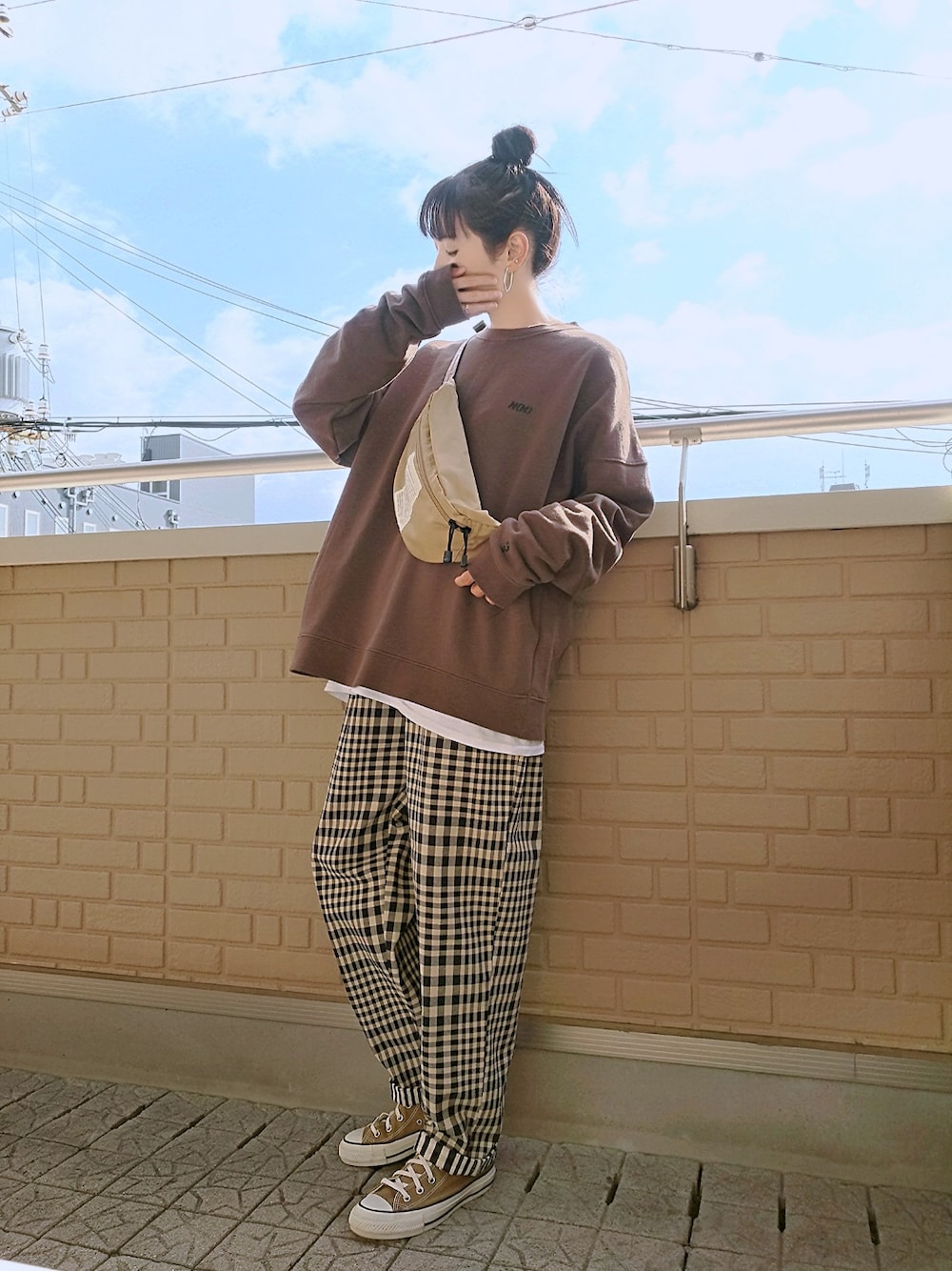 スウェット×シェフパンツ ブラウンのNUMBER (N)INEのスウェットに白Tをレイヤード ベージュのボディバッグに合わせてベージュ×チェックのシェフパンツはロールアップ ネズミ年(小窓) げっ歯類ってことでカピバラさんも立派なネズミ 週末に会ってきたカピバラさんはおっとりしてたけど姫センで遭遇したカピバラさんはかなりアクティブで私の足に突っ込んできた_:(´ཀ`」 ∠):_