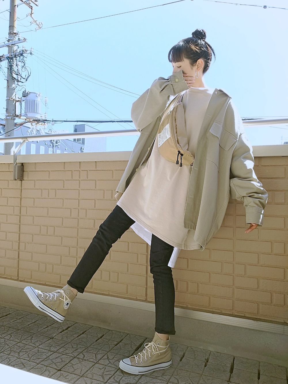 CPOシャツ×スキニー かなり薄手なスウエットに白TをレイヤードしてビッグシルエットなCPOシャツをゆる羽織り TYMS(小窓) 延期になっちゃったけど友達に頼んでおいた30th Anniversaryツアーのグッズが届いた♪ 一緒に美味しそうなお菓子と困り顔のヤツが入ってたw(ㅅ˙³˙)