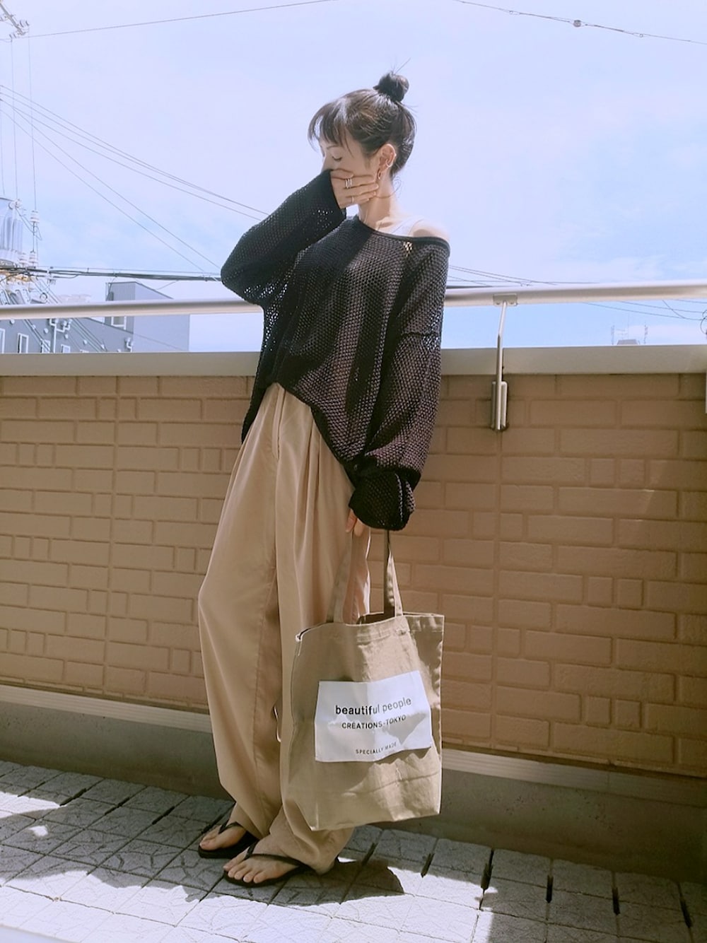 シアートップス×タックチノ 薄手で柔らかい生地のタックチノに前回の色違いのシアートップス(XL)を腕まくりなしでゆるくブラウジング トップスに合わせてサンダルも黒ビーサン ホットサンド(小窓) ひさびさにコーヒーの美味しいカフェで休憩 厚切りベーコンサンドを眺めつつ大粒の小豆たっぷりホットサンドに生クリームのっけて···( ゚Д゚)ウマー