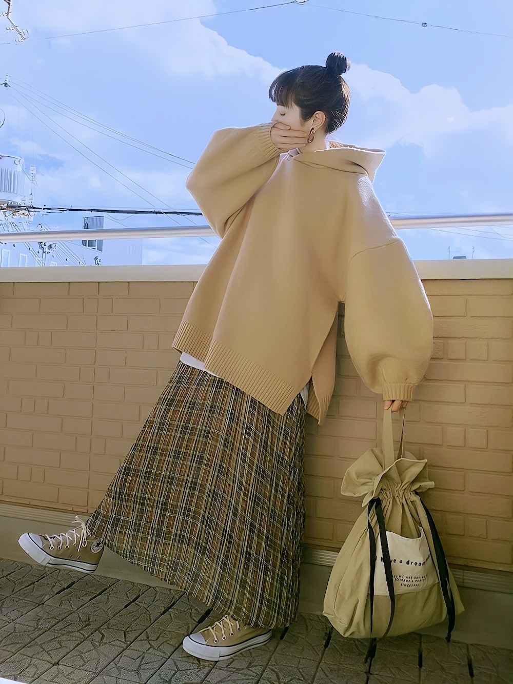 パーカー×チェックスカート チェックプリーツスカートにボリュームたっぷりな袖と大きめフードのニットパーカーは白Tとレイヤード コンバースと巾着バッグはベージュ合わせ 毎年恒例(小窓) 今年も実家からお歳暮のカニと甘海老が届いた♪ 大きなズワイ(オス)も美味しいけど子供の頃からよく食べてた香箱(メス)は小ぶりだけど内子と外子が美味w 甘海老はお刺身と頭は捨てずに出汁をとってお吸い物で余すことなく頂く(ت)♪