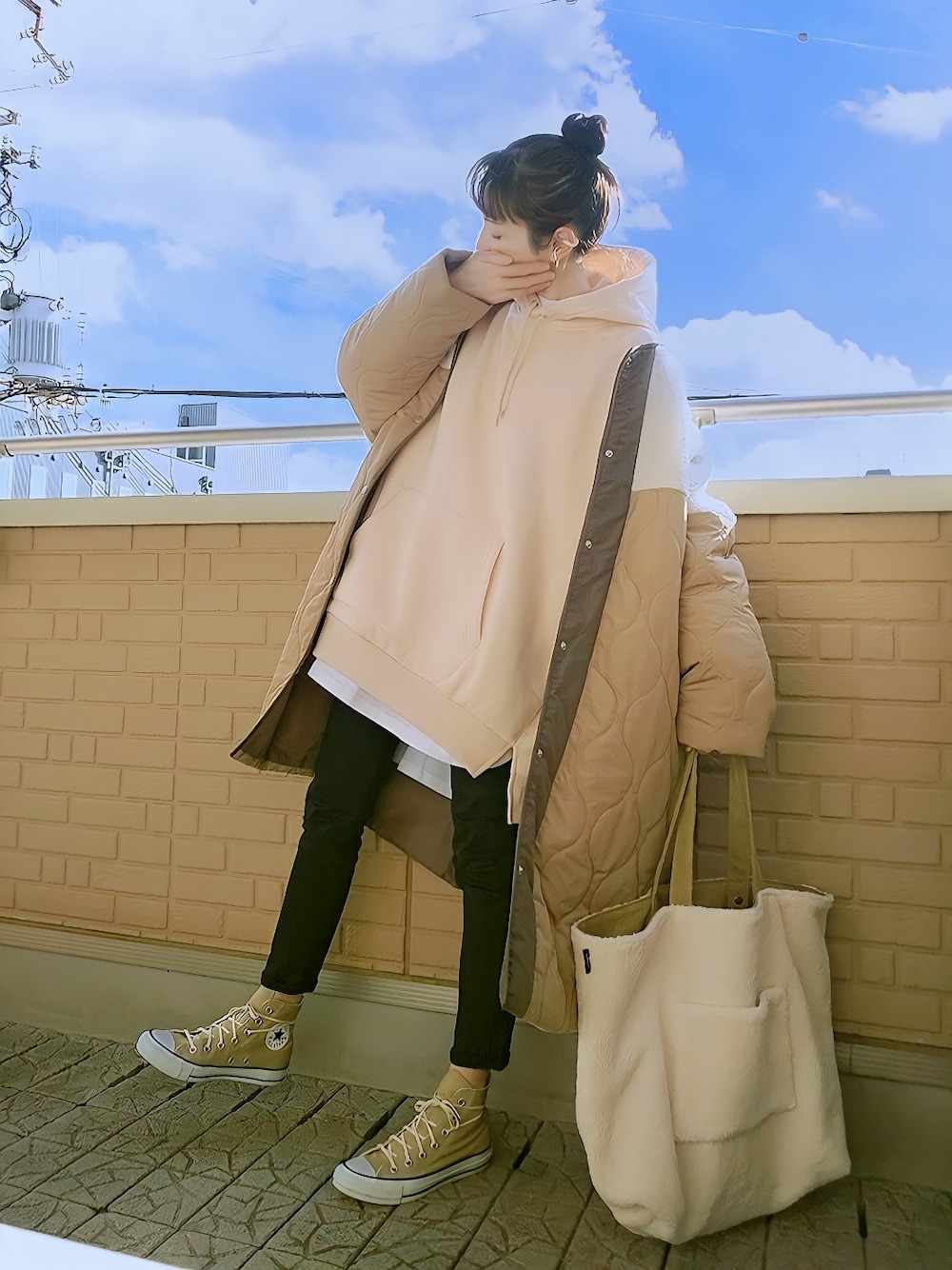 キルティングコート×パーカー 軽くて暖かいビッグシルエットのオーバーサイズパーカーは白Tとレイヤード リバーシブルトートは裏返してコートとボア合わせ このトートかなり大きくて年末の買い出しに重宝しそう♪ 贈り物(小窓) 福岡の友達から注文してくれてたイエモングッズと東京の友達からお歳暮のビールとソーセージが届いた♪ 我が家の冷蔵庫は年末に向けてハムやソーセージが貯蔵され始めてる( ´•౪•`)
