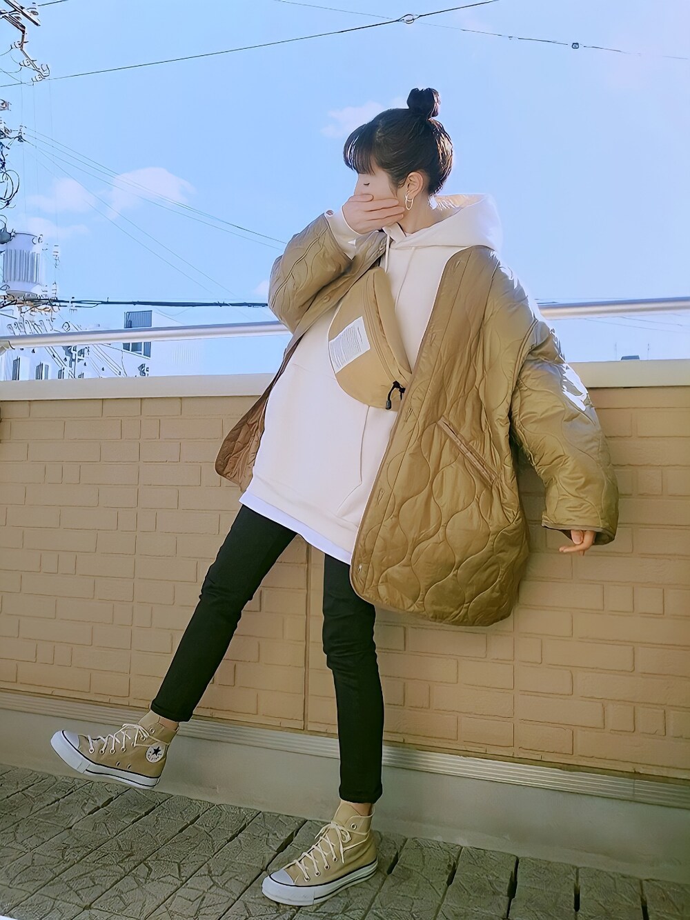 キルティングジャケット×パーカー フードが立つぐらいしっかり厚手であったか裏起毛パーカーは白Tとレイヤードしてキルティングジャケはゆるっと抜き襟でボディバッグとコンバースは色合わせ 今年はベージュコンバース主体のコーデが多かった1年 1年の成果(小窓) 今年はコロナでちょっとした遠出や帰省が全くできなかったけどスコーンをレシピ見ずに作れるようになったり、作ったことのない料理に挑戦してみたりミニトマトを育ててみたりと家での新しい過ごし方を習得w 来年はもう少し過ごしやすい年になるといいなぁ···( ´-` ).。oO