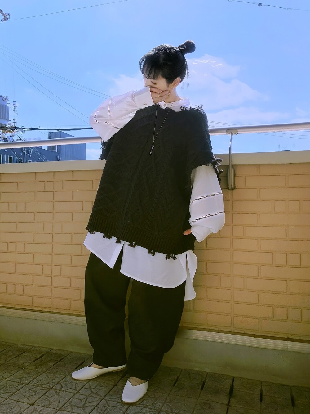 ケーブルニット×バルーンパンツ GUのメンズバルーンパンツはシルエットが良くて色違買い 前·後·袖外し·袖ちょいはずし?で4wayで着れるケーブルニットは袖を全部はずして今回はベストで着てボリューム袖の白シャツをレイヤード スクエアトゥのペタンコ靴で綺麗めなカジュアル Sweets(小窓) いろいろ食べてたファミマのスィーツ 地域限定スフレ·プリンの西日本verバター入りクリームがのっかったホットケーキなスフレ·プリンに紅はるかのスィートポテトクレープ どっちも美味しかったけどスフレ·プリンは他の地域のが食べてみたくなるぐらいに美味しかった(ت)♪