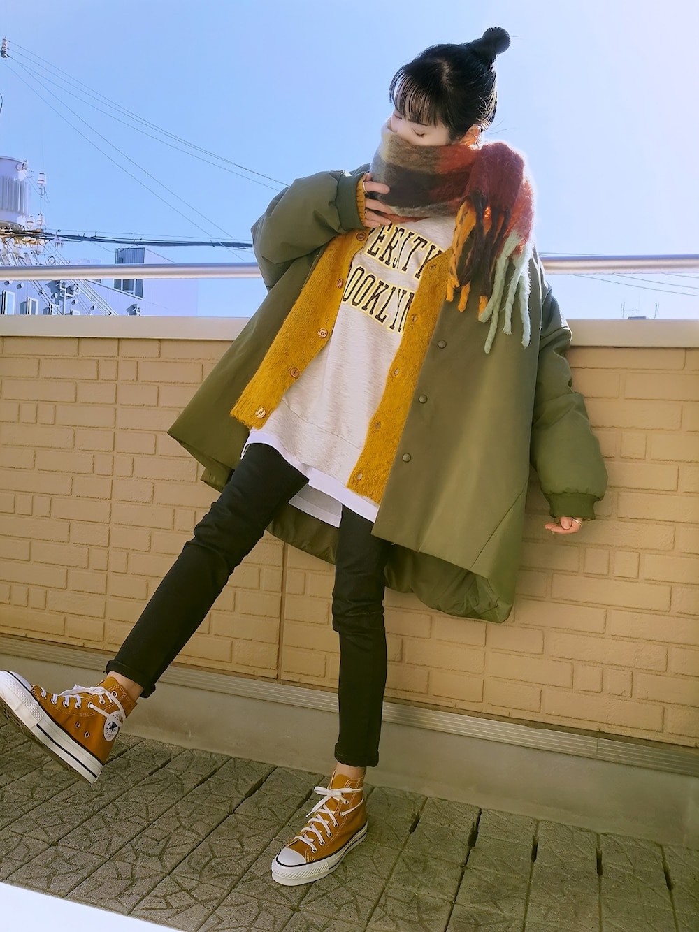 MA-1×カーディガン マスタードイエローのモヘアカーデのインナーにイエローのカレッジロゴスウェットは白Tとレイヤード オーバーサイズでビッグシルエットのMA-1は抜き襟でゆる羽織りしてトップスのカラーに合わせたグラフチェックのマフラーはぐるぐるっとボリューム巻き Apple(小窓) 今年も戴いた半年前ぐらいから予約しないと手に入らない青森県産の限定りんご"こみつ" 画像で見ても分かる通りに普通のりんごより小ぶり だけど触るだけで蜜でベタつくぐらいに中は蜜だらけw だから食べる時は皮を剥かずに輪切りで芯の近くまで味わうのがベスト(ت)♪