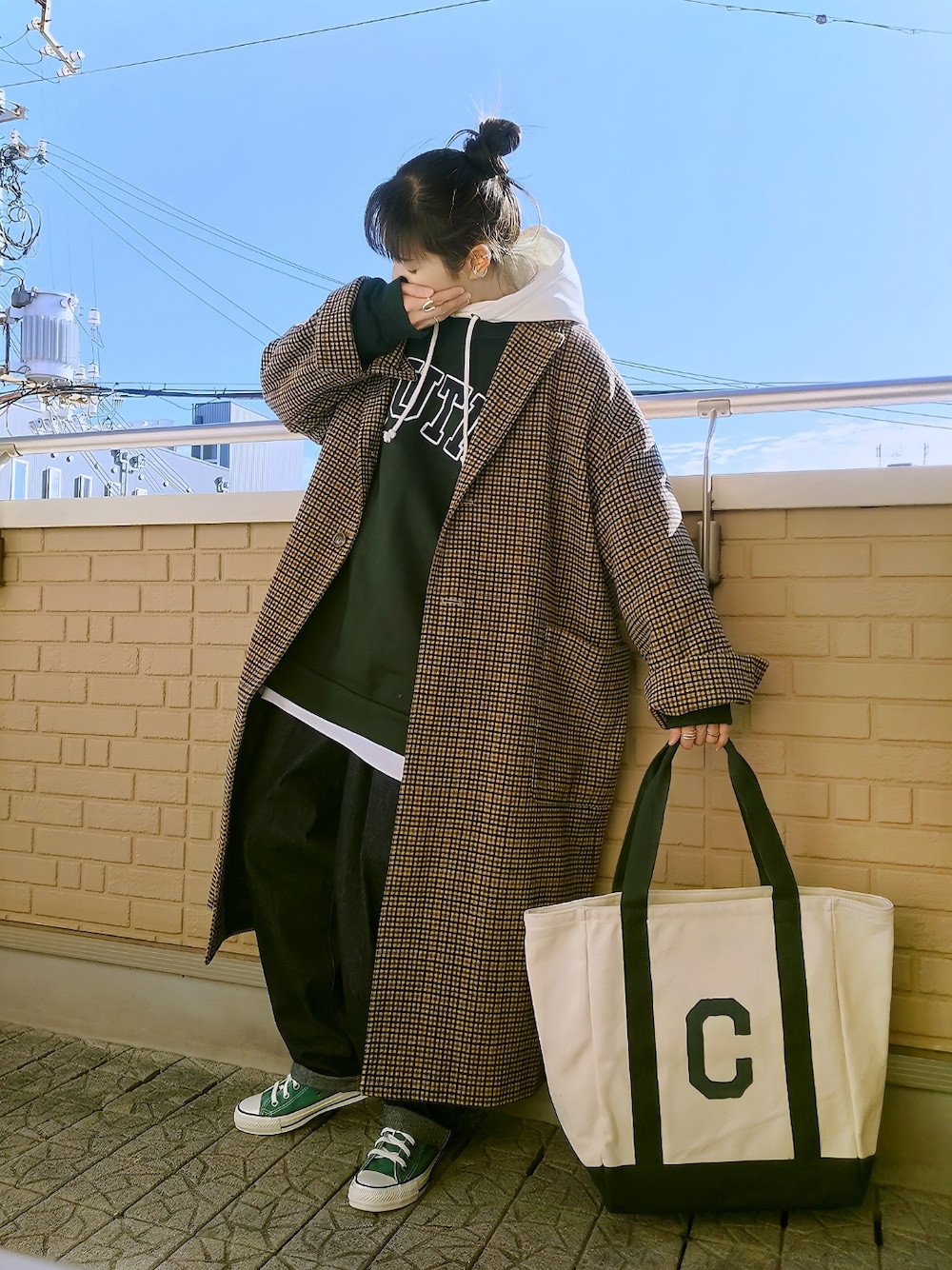 チェスターコート×スウェット グリーンのNAUTICAのロゴスウェットに白の付けフードに白Tをレイヤードしてチェックのチェスターコートを抜き襟でゆる羽織り スウェットに合わせて足元とトートもグリーン合わせ メロンパン(小窓) たまたま立ち寄ったSAで匂いにつられて買ったメロンパン 見た目は普通だけどこれが驚くほどに美味!! 焼き立てを受け取っただけで表面のビスケット生地が潰れそうなぐらい薄くて一口食べたら中はふっわふわ♪ 大体のメロンパンは中がぎっしり詰まってるのにコレはホント軽くて何個でも食べれそうぐらい美味しかったぁ~(*´ェ`*)