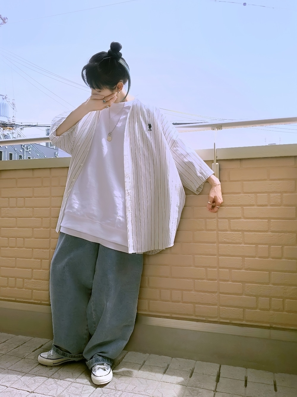 ストライプシャツ×スウェT 真っ白スウェTは白タンクとレイヤードしてオーバーサイズのストライプシャツを抜き襟でゆる羽織りしてデニムの色に合わせてコンバース+リング+イヤーカフもブルーグレー LEMONADE(小窓) ファイルの中に埋もれてたLEMONADE by Lemonicaの金沢の限定メニュー「食べるレモネード」~CANレモネッタのピーチ 今はまだ全国でも4店舗だけのメニューだけど夏には全国の店舗でも食べれるみたいなので気になる方はお試しあ~れ(ㅅ˙³˙)♪