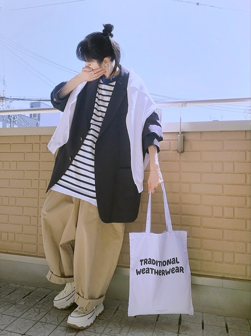 k(ani)のトートバッグ「WAVE LOGO TOTE」を使ったコーディネート