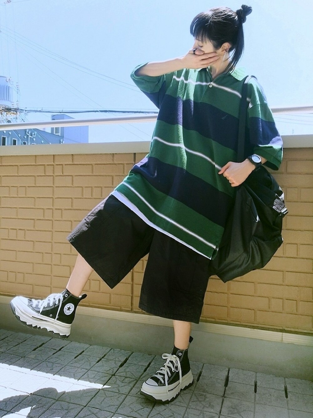 ポロシャツ×カーゴハーフパンツ 白タンクとレイヤードしているのはレトロなボーダーが可愛いポロシャツはNAUTICAの古着 ビッグシルエットのトップスとゆるシルエットのカーゴハーフパンツとのバランスを合わせて足元は厚底コンバース Birthday(小窓) 今日 6/27は旦那の誕生日 何年も前にプレゼントした財布がクタクタになってきて何か良いのがないかと探していたので今年のプレゼントに新しいお財布とスニーカーも欲しがっていたので軽くて履きやすいAKIII CLASSICを韓国からサイズを取り寄せ注文! なんとか前日に到着したので無事に今夜渡せそうです(ت)