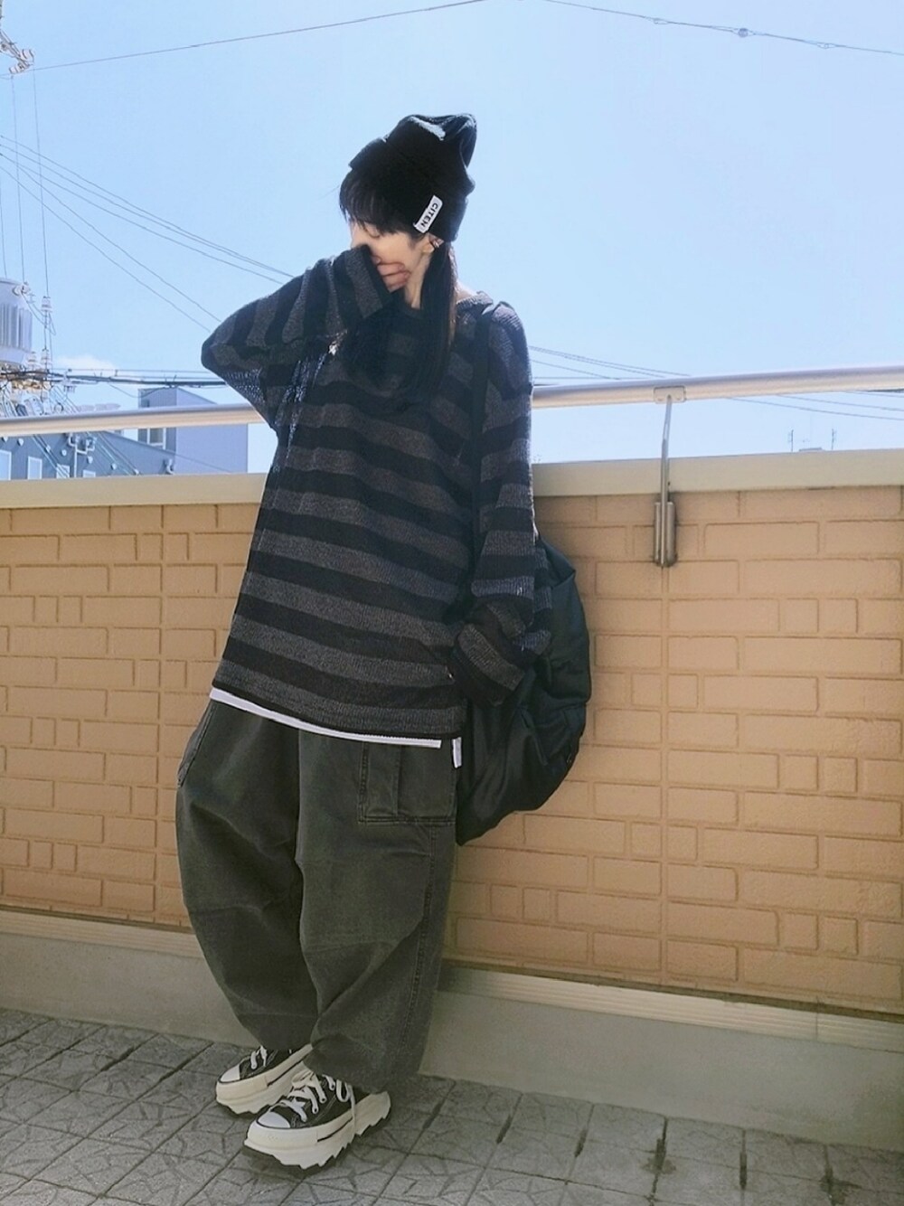k(ani)のスニーカー「converse コンバース AS (R) TREKWAVE HI オールスター (R) トレックウェーブ HI 31308860 ABC-MART限定 *BLACK」を使ったコーディネート