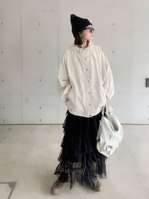 ジャージ×スキニー 白ロンTに白タンクをレイヤードして朝が肌寒くて昼間は陽射しがある今の時期に羽織るのにちょうどいいジャージは抜き襟でゆる羽織り ボトムは久々のスキニーと合わせてスニーカー+ビーニー+小物·アクセサリーは黒まとめ