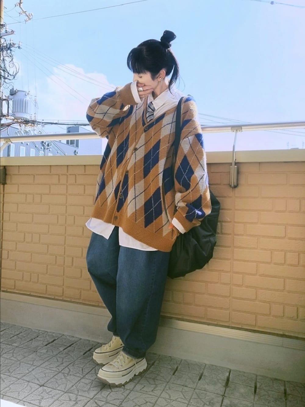 カーディガン×バルーンデニム ストレッチの効いた楽ちんバルーンデニムにオーバーサイズの白シャツ+NAUTICAの古着ネクタイにGUのアーガイル柄カーデを少し抜き襟で プレッピー風なコーデだから足元はコンバースにバックパック King Gnu(小窓) 11/29発売のKing Gnuのアルバム『THE GREATEST UNKNOWN』収録曲全曲が公開 ドラマの主題歌やCMの曲に呪術の劇場版[一途]に[逆夢]と渋谷事変[SPECIALZ]も収録されてて完全に買いの1枚 早速予約〜(ㅅ˙³˙)♪