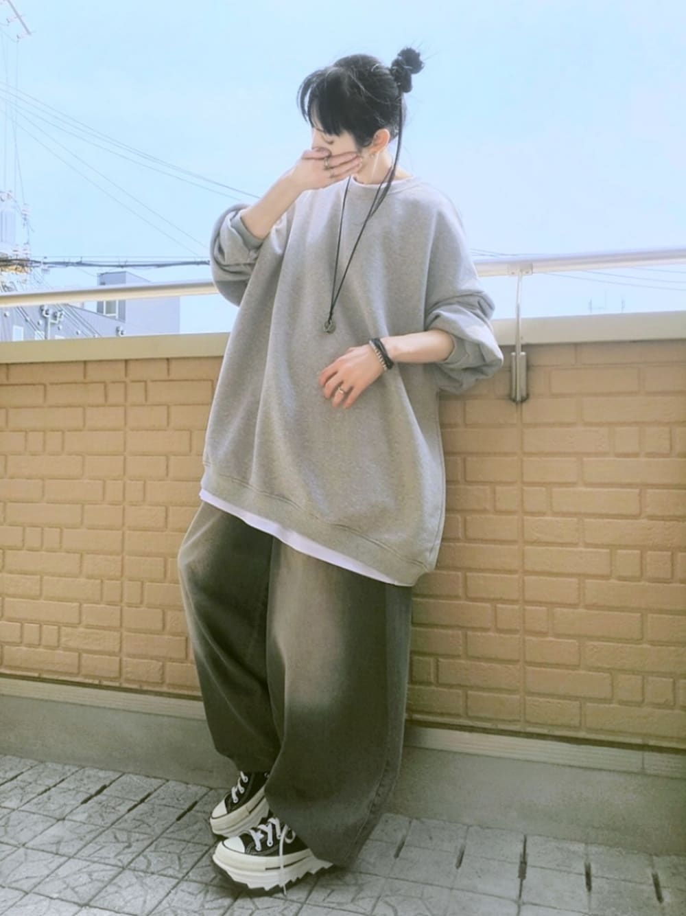 k(ani)のスニーカー「converse コンバース AS (R) TREKWAVE HI オールスター (R) トレックウェーブ HI 31308860 ABC-MART限定 *BLACK」を使ったコーディネート