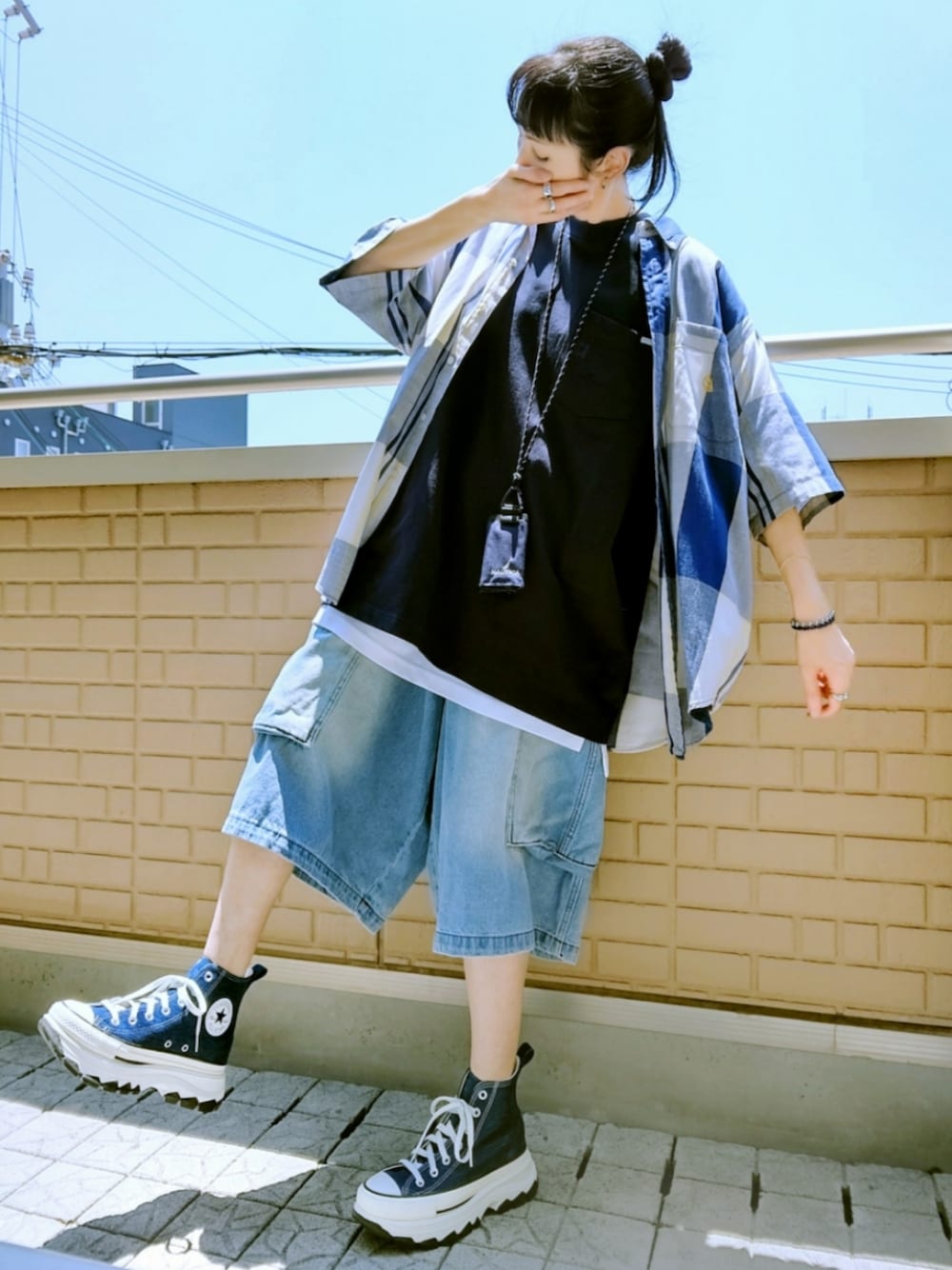 バルーンシルエット+ビックポケットのバミューダデニムにネイビーのTシャツは白タンクとレイヤードして抜き襟で羽織っているチェックシャツは古着のNAUTICA 全体のボリュームとカラーに合わせて足元はデニム地のトレックウェーブ ーーー余談なのですが··· 私の車のオーディオに不具合が出てきたので買い換えようとオート◯ックスに行ったら手頃な価格のモノの在庫がない!! なので他の店舗に行ってみるとそこにもない!!懲りずにまた違う店舗に行ったら今度はモノ自体がない!! 仕方ないので次の日に今度は大型の店舗に行ったらちょっと上の価格帯のモノはあったけど次はピットが混んでるので1週間後に来てもらって一日預かりに···と言われる始末(; ˙³˙) 「んじゃ自分で付けます」 と、旦那が言ってくれたので2時間程で現段階で付いてるのを外して購入したモノを付けてくれましたw こんな時はホント配線や電機系の仕事をしてる旦那の有り難みをひしひし感じる(ㅅ˙³˙) でもまぁ、その後の細かい設定や使い方をマスターするのは自分なんですけどねw