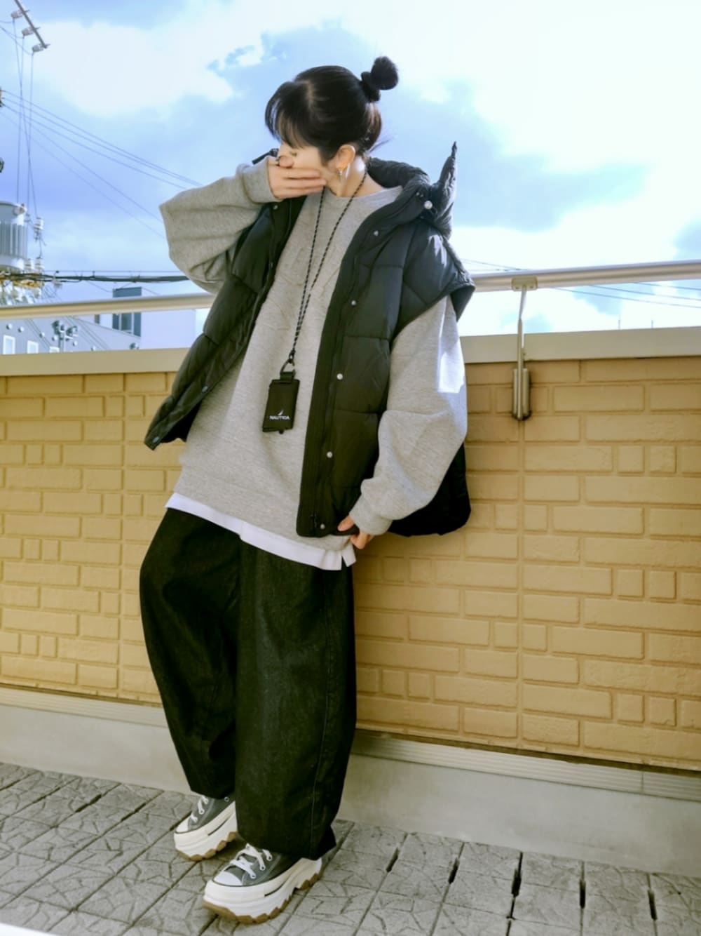 minsobiのバルーンデニムにReebok×NAUTICAのダンボールスウェットは白Tとレイヤードしてフードの取れる2wayのダウンベストをゆる羽織り スウェットに合わせてNAUTICAのネックウォレットに足下はグレーのトレックウェーブ Bad Bunny(小窓) ちょうど今週の火曜にグラミーの発表があったんですが今年のスーパーボウルのハーフタイムショーにも登場するBad Bunnyが年間最優秀アルバムに🎶 レッドカーペットでプレッピーっぽいスタイルで登場したBillie Eilishは年間最優秀楽曲 最優秀ロックソングにはNine Inch Nails そうそうレッドカーペットと言えばTeyana Taylor! 10代でビヨンセの楽曲の振付を担当した彼女のドレスというか見事な腹筋!!ホント凄かったなぁ(ㅅ˙³˙)