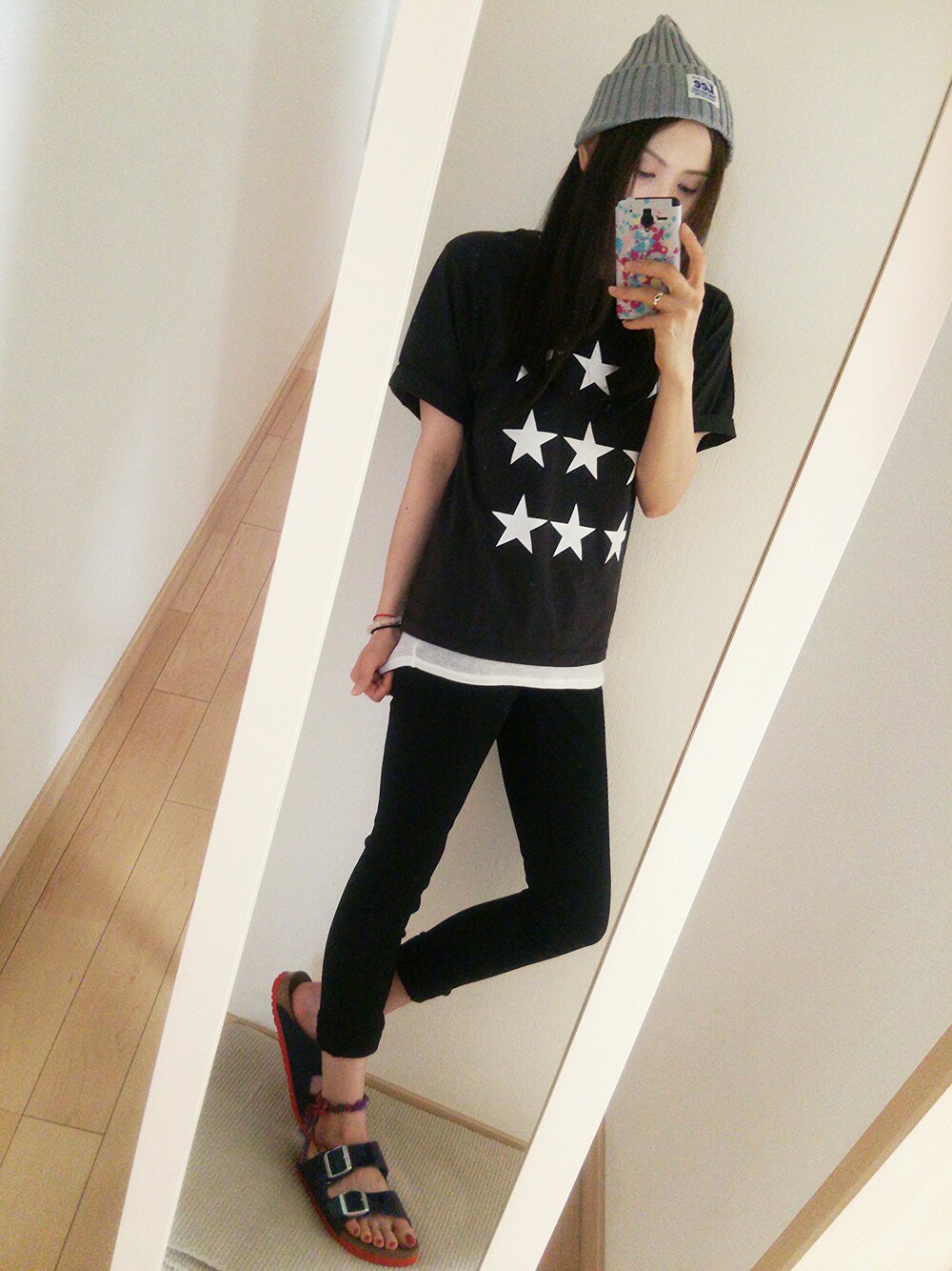 星柄でロールアッパー٩(๑• ³ •๑)۶ 久々に着たMICA&DEALの星T 相変わらず画像じゃ分かりにくいけど☆はプリント・フロッキー・ラメの3パターン 真っ黒すぎるのも面白くないから白Tでレイヤード あとネイル➕てきとーアンクレットで赤の差し色➕ 吉井ハンガーを送ったくれた友達がわざわざwearを登録して私のページを見てくれました(小窓参照) ボールペン並みに照れ“臭かった”らしい 笑