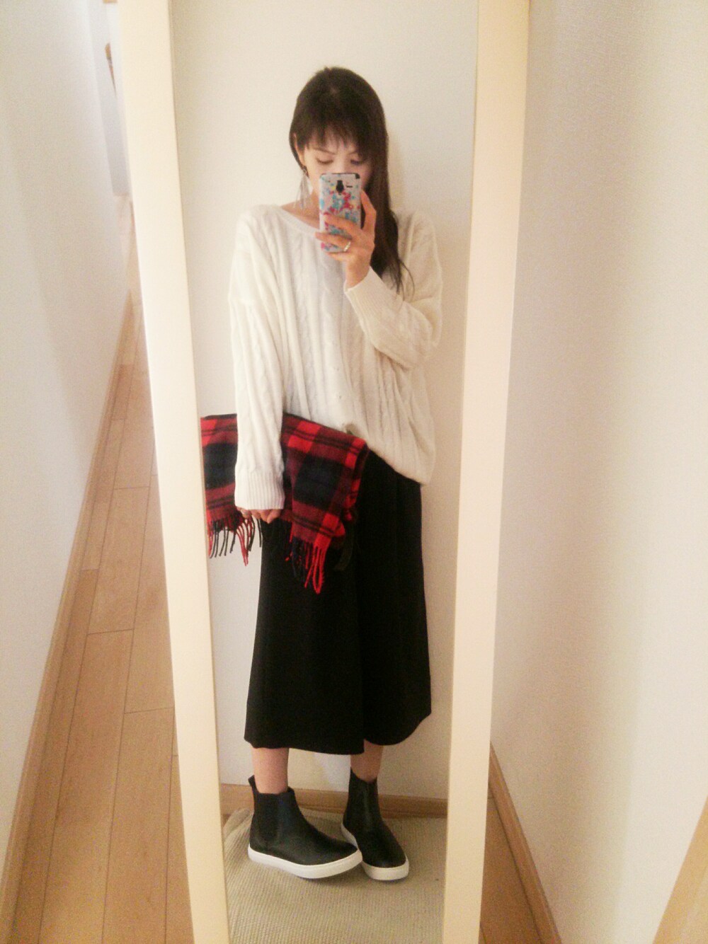 今回こそ前髪あります٩(๑• ³ •๑)۶ ゆるっと白ケーブルニット×ガウチョのモノトーンコーデにストールで赤チェック➕ やっとイイ感じの長さのタッセルピアス見つけた(小窓) 今日はクリスマス🎄 ということで小窓には今年のケーキとプレゼント🎁 誕生日やイベントごとのプレゼントにいつも頭を悩ませてるけど今回のクリスマスは海外限定チューブラにしてみた(小窓) あと折角なので去年会社のチャイニーズちゃんがくれたブツを着用(小窓) 本場チャイナ服じゃなくて何故にコレをチョイスしたの未だに疑問w さて、大掃除も終わったし、年賀状も出したし、お年玉用の新札両替も今してきたし・・・ あとは帰れるかまだ分からないけど帰省準備ぐらいかな(ㅅ˙³˙)♪