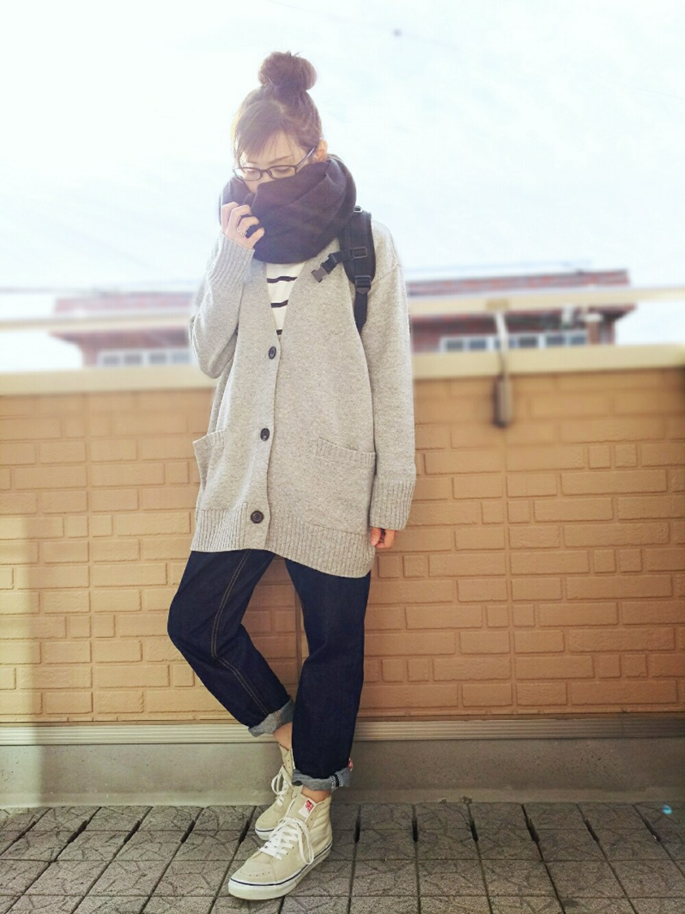 ゆるデニムでロールアッパー٩(๑•ε・๑)۶ オーバーサイズを更に1サイズ大きめで買ったカーデ×サルエル風なハイウエストデニムをルーズにロールアップ 前に載せた時は横向きで分かりにくかったけど実はカーデと同じくデニムも1サイズ大きめw ジャストサイズを試着したら、ゆるっとはしてるんけど何だか微妙だったからスタッフさんの勧めを断って大きめを購入(ゴメンナサイwww) お蔭で楽チンすぎて年明けてからコレばっかり履いてます♪ ストールは小窓で見ての通り黒一色じゃないので、黒の部分だけ見えるように巻いて、メガネもバックパックも黒にして今日はボーイッシュ風 帰省した時にSAで見つけたお菓子(小窓) そのまま食べてもトッピングで使っても・・・って食欲が失せる色過ぎて買わなかった(ㅅ˙³˙;)
