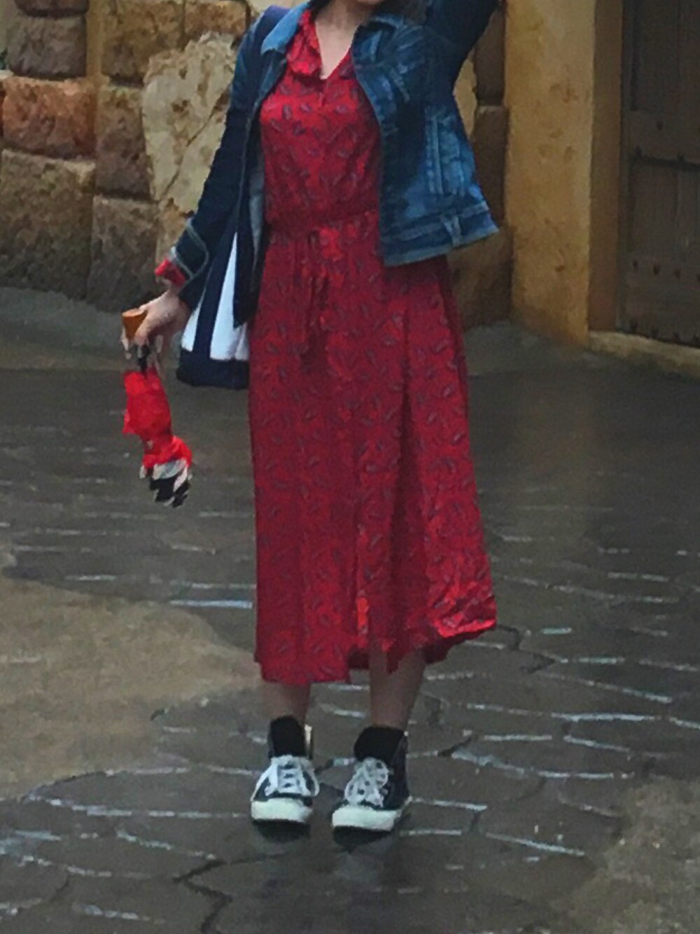 ディズニーコーデ♡ 2日目は寒かったので、シャツワンピの上にGジャンを… それでも少し寒かった😭