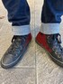カーコートは1900年代初頭、自動車を運転するときに着用した上着だそうです。当時の自動車は屋根もなければ暖房もなかったため、このような無骨で肉厚、ポケットがたくさん付いている防寒着が必要とされたのでしょう。 さて、今日のワンポイントはスニーカーです。コンバースオールスターですが、前半分がレザー、後ろ半分が赤のチェック柄キャンパス生地になっているユニークなデザイン。外側にサイドジップがついていて、一番上には革のベルトもついています。オールスターのシンプルなデザインとは方向性が反対ですが、たまにこういうのも履きたくなるんですよね。 ふだん滅多に履かないスキニーデニムを引っ張り出してきたのも、このスニーカーを引き立てるため(というか写真を撮りたいから)だったりします。