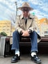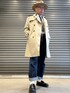 トレンチコートとブルーデニムを使ったレトロ寄りのコーデです。 #チェック はアーガイル柄ソックス。(写真2枚目)