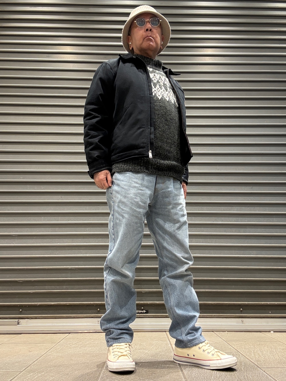 Carhartt デトロイトジャケットと Levi’s 560 テーパードデニムパンツを使ったコーデです。 このデニム、ふだんはロールアップして履くのですが、今日は裾にクッションを作ってみました。裾が細くなっているので、これはこれでいいかも。 帽子はニットのバケットハット。一年中被れる帽子って実はあまり持っていないので、これから活躍しそうです。