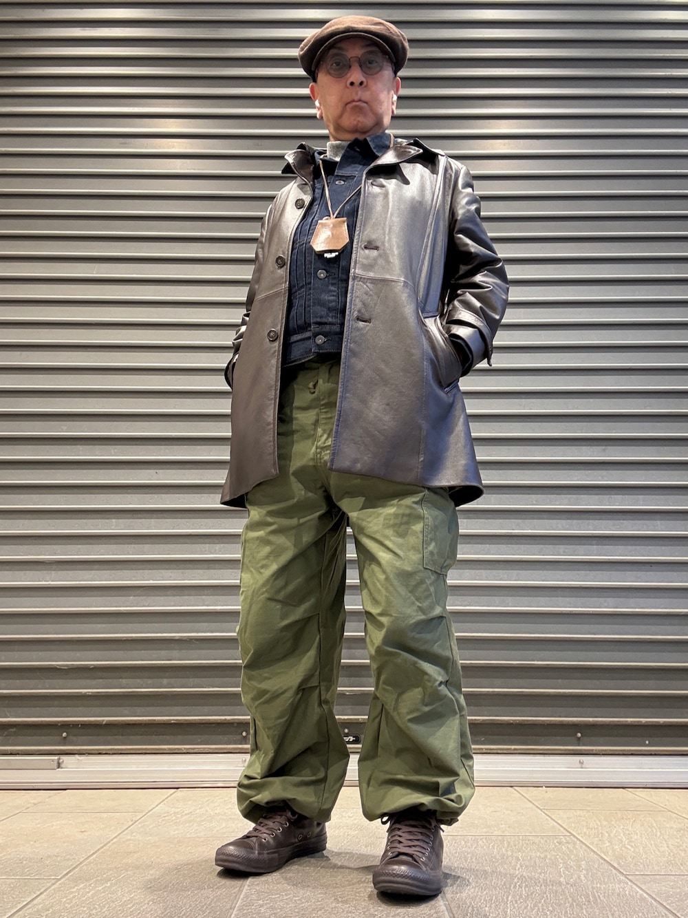 なんちゃってミリタリー風。 ダークブラウン中心のコーデに、例の話題沸騰デニムトラッカージャケットを組み合わせたら、なんかレトロな雰囲気になりましたよ。