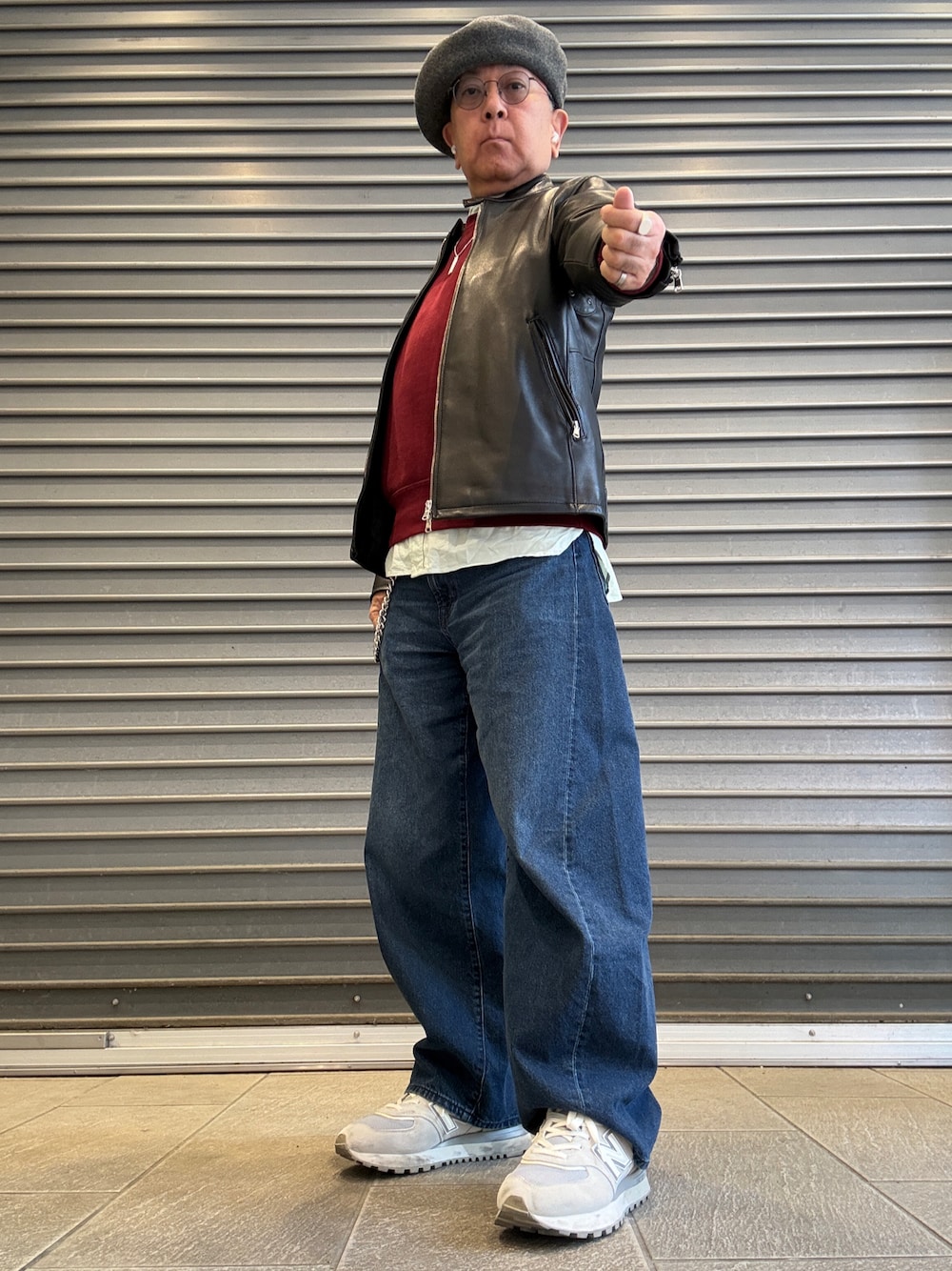 床屋へ行く直前に撮影したので、眉を描いていません。 スニーカーは NEW BALANCE 574 の2022AWモデル。着用頻度が低いのでソールが全然減ってないです。初めて着画撮ったら、想像以上にボリューム感があって驚きました。