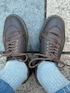 最高気温8℃。朝のうちは関東南部でも淡雪が舞う陽気でした。窓から見える春の雪に、猫たちも大騒ぎです。 というわけで、久しぶりにチェスターコートと赤ストールの登場。今シーズンはこのコーデも着納めになりそうです。 (写真③) セカストでゲットしたマーチンは、顔料がポロポロ落ちてくる状態なので、ブラウンの靴クリームを塗って一日陰干し。防水スプレーで表面を保護。(2回目) アッパーはヨレヨレだけど、履き心地はバツグンなので、まだまだ育てます。