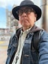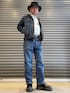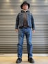 デニム on デニム。 ボリューム感のあるハットと厚底ブーツで、挟み込むようなコーデです。