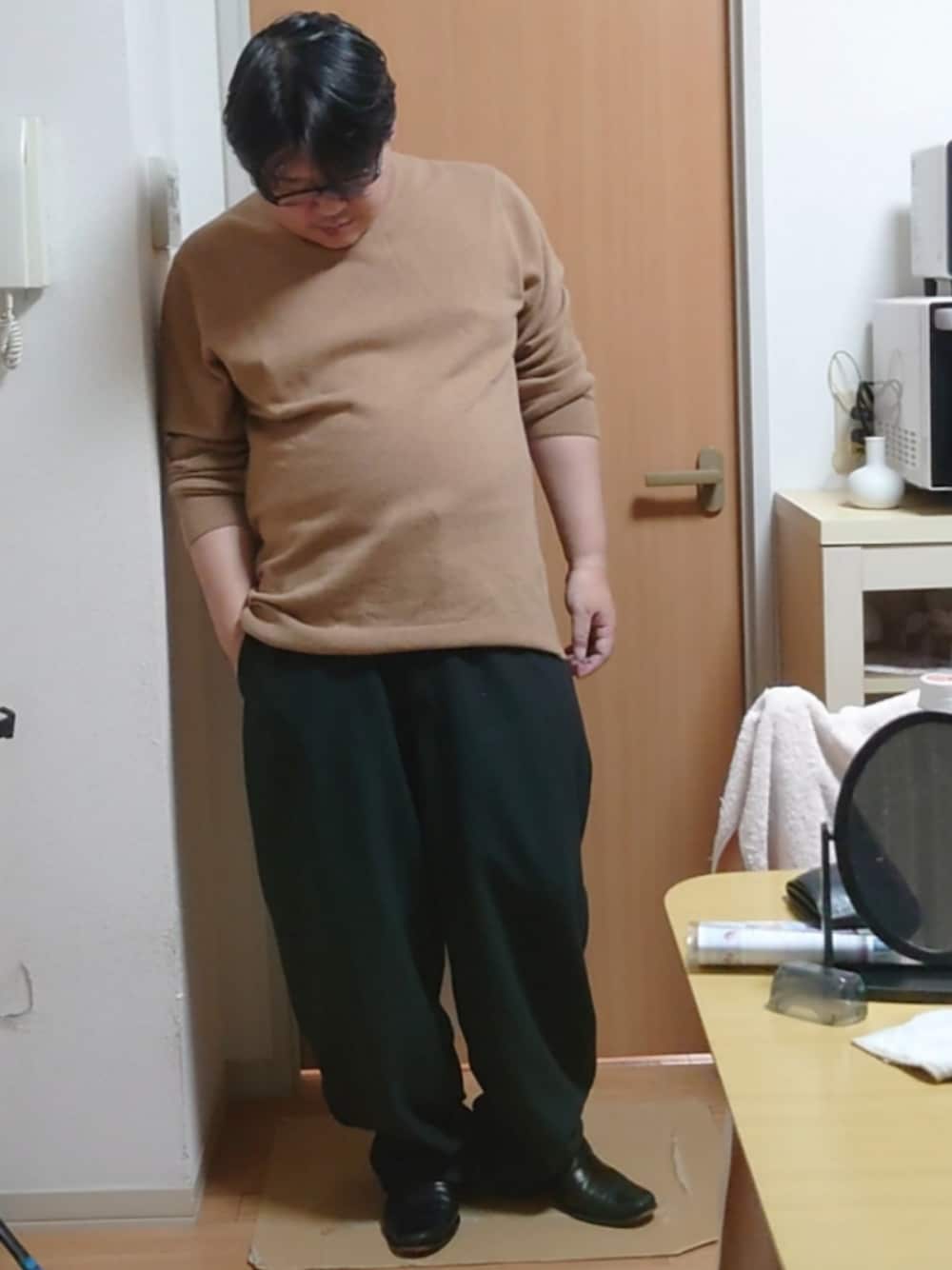 見てくれてありがとう。トップスはユニクロカシミアニット。XL。パンツはユニクロUブラッシュドスウェットワイドパンツパンツ。M。チャックがついてるパンツです。このパンツLがかっこいいみたいだからL買えたら買ってみる。僕はLがとにかくかっこいいと思った。168の81キロだからまだまだ無理だけど。Aラインシルエットがきまったらすごくかっこいい。それからアルマーニのパンツがかっこいい。今家にない…。持っていたんだけど…。残念としかいえん。