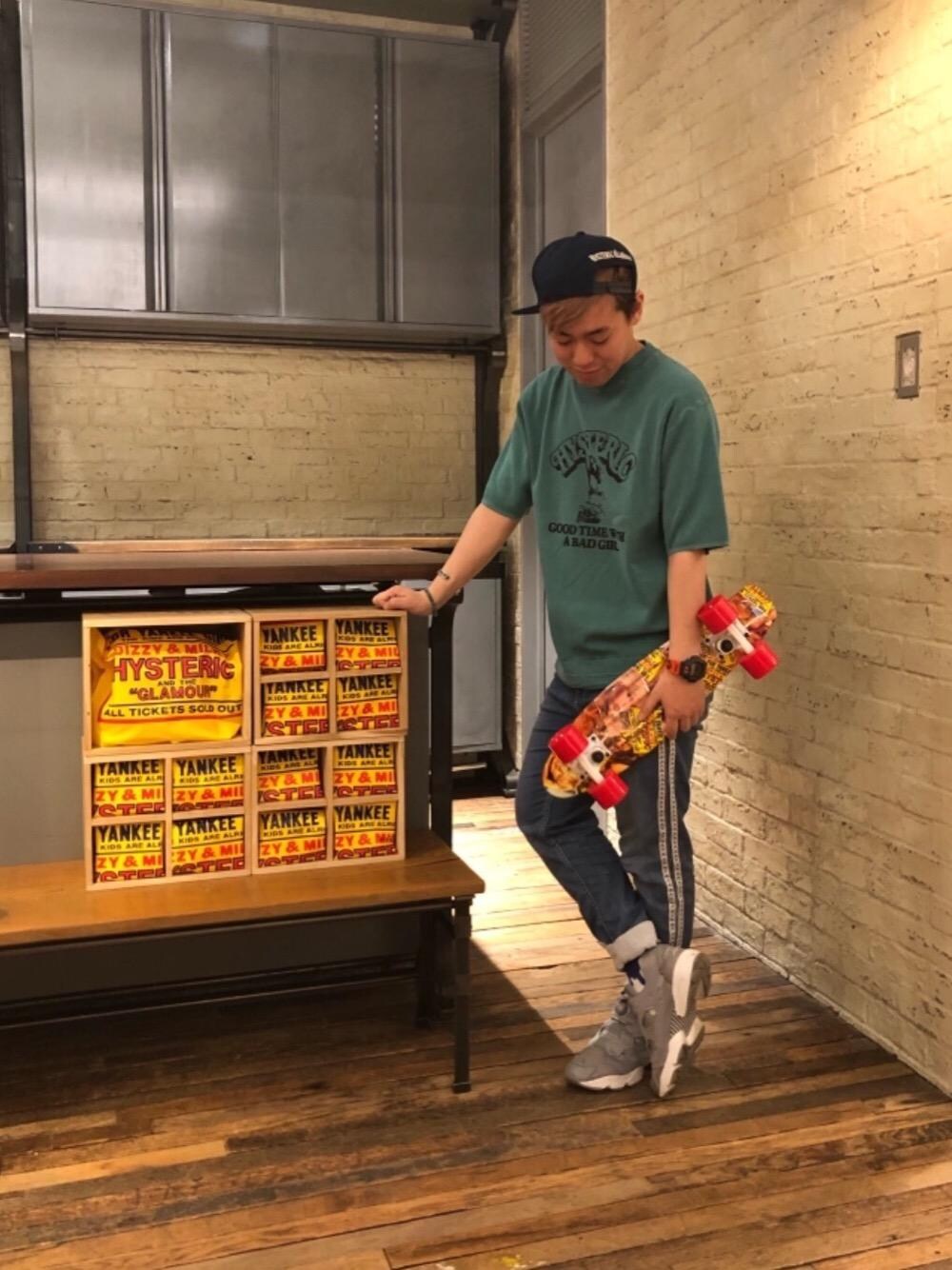 カンジ(HYSTERIC GLAMOURルクア大阪店)のキャップ「HYS WHISKY柄 刺繍キャップ」を使ったコーディネート