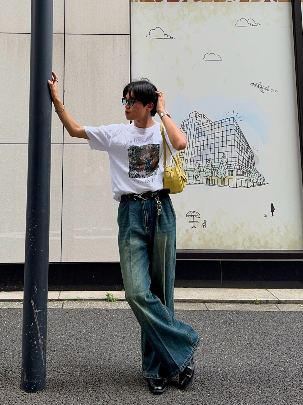投稿見ていただきありがとうございます🙌 今回は個人的に超お気に入りなデニムコーデです! シンプルだけど差し色でバッグを黄色にしてみたり、無地TではなくグラフィックTなどにするとこなれ感が出てめっちゃおしゃれになるのでおすすめです🫶 いいね、お気に入りして参考にしてみてね✅ 他のコーデはインスタにて▶︎iii___kamma