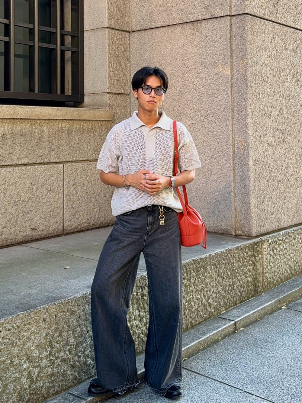 投稿見ていただきありがとうございます🙌 今回は韓国ファッションをしました! 明るめのグレーのニットポロにチャコールグレーのデニムを合わせたけど最高に良い組み合わせでした👏 差し色欲しかったのでオレンジのバッグ使ってます👜 いいね、お気に入りして参考にしてみてね✅ 他のコーデはインスタにて▶︎iii___kamma