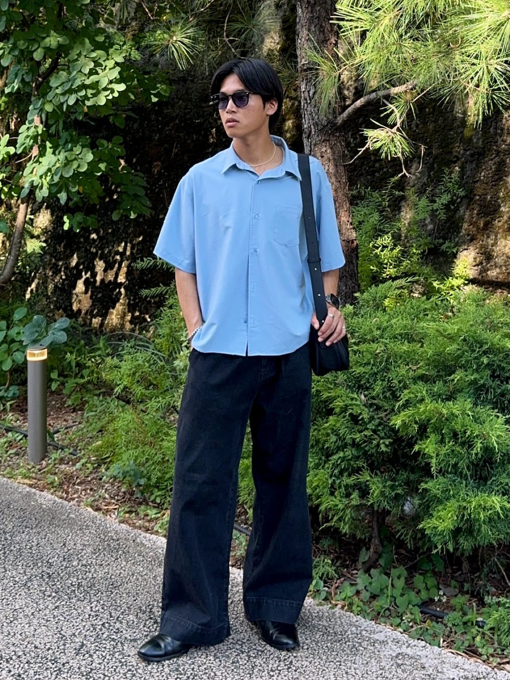 投稿見ていただきありがとうございます🙌 今回はシンプルな青シャツを使ったキレイめカジュアルスタイル! やっぱりシャツコーデが1番オシャレに決まる気がします☝️ 今回は黒デニムと合わせてシンプルかつカジュアルダウンさせたコーデにしてます〜! サングラスも青レンズのものを使って色の統一感を図ってます✌️ 真似しやすいコーデなのでやってみてね! いいね、お気に入りして参考にしてみてね✅ 他のコーデはインスタにて▶︎iii___kamma