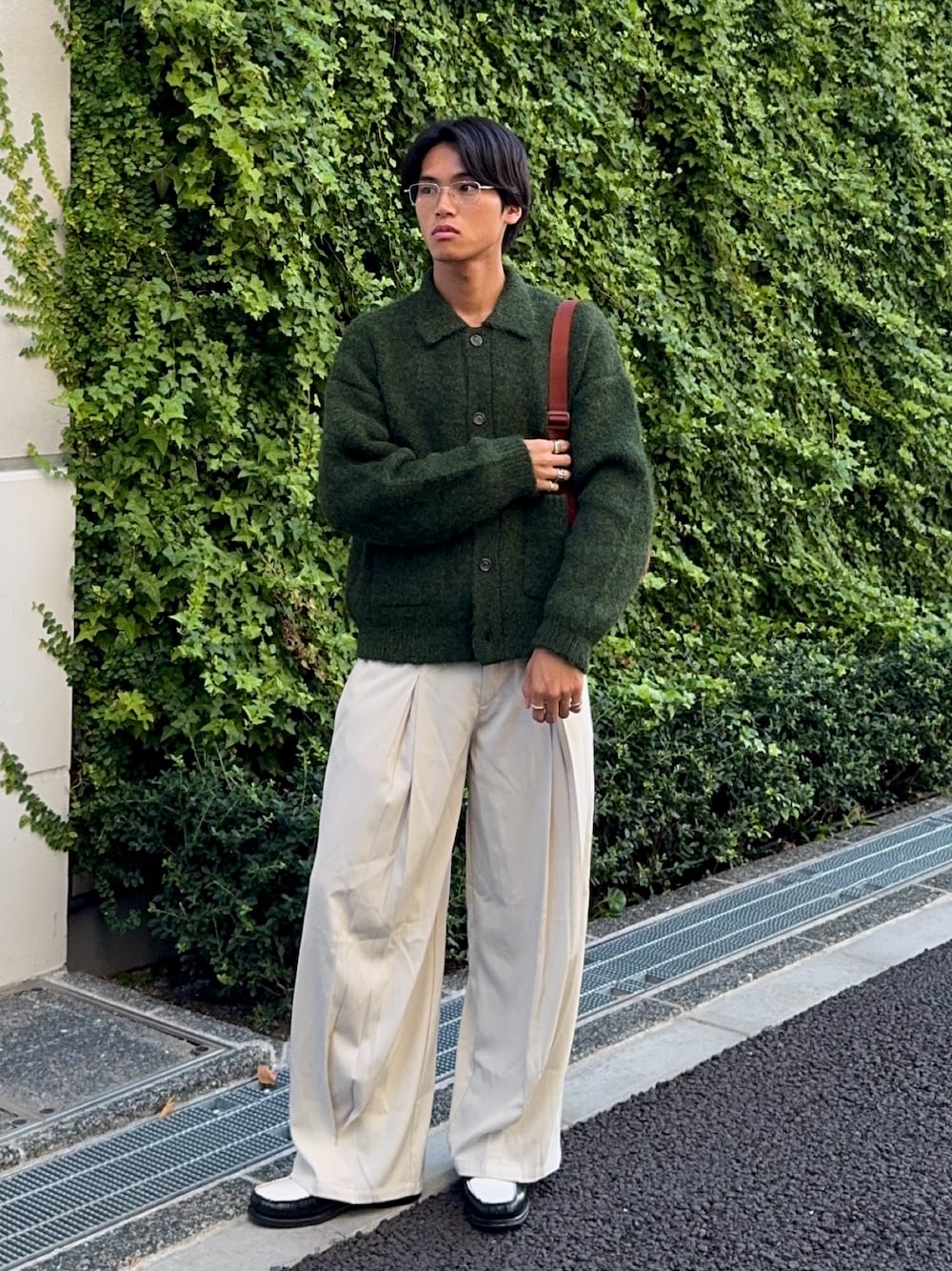 投稿見ていただきありがとうございます🙌 今回は背景と丸かぶりの色の緑ニットを使ったキレイめコーデ! この緑ニットほんとに可愛いんです、、、 デザインとか着心地とか最高でおすすめしたいです👌 ボトムスは明るい白のスラックスと合わせてます! 色を統一したかったので、足元もバイカラーのローファーにしてます👞 秋らしさ出したかったので、バッグと見えてないですがベルトもブラウンのものにしてます〜! いいね、お気に入りして参考にしてみてね✅ 他のコーデはインスタにて▶︎iii___kamma