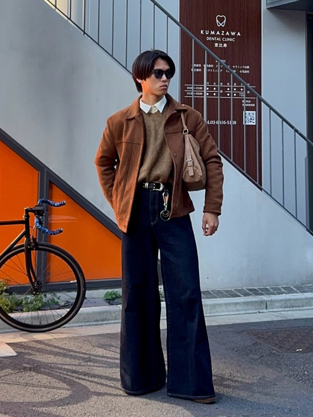 投稿見ていただきありがとうございます🙌 今回はスエードジャケットとデニムを合わせたきれいめカジュアルスタイル! インナーはキャメルのニットを初着用。 これが良いアクセントになっていてバッグの色と合わせて統一感を出してます👌 ボトムスは何にでも合わせやすいフレアバギーデニムにしてます! シルエットめっちゃ良いのでお気に入りです🫶 いいね、お気に入りして参考にしてみてね✅ 他のコーデはインスタにて▶︎iii___kamma