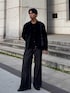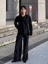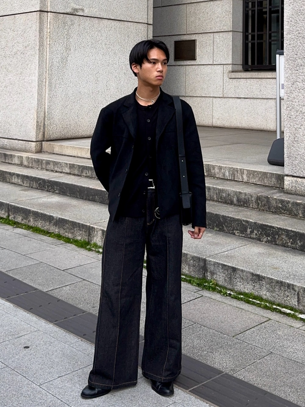 KAMMAのテーラードジャケット「スエードクロップブレザー黒」を使ったコーディネート
