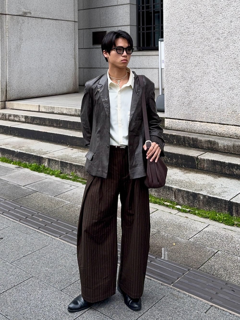 投稿見ていただきありがとうございます🙌 今回は男らしく決めた春コーデ! 今の時期はレザージャケットが大活躍します✌️ インナーは春らしくシャツでまとめてます! ボトムスとバッグで明るい雰囲気を出したかったので、ブラウンのアイテムを使ってます🟤 きれいめにまとめたかったので黒のブーツ着用してます🥾 いいね、お気に入りして参考にしてみてね✅ 他のコーデはインスタにて▶︎iii___kamma