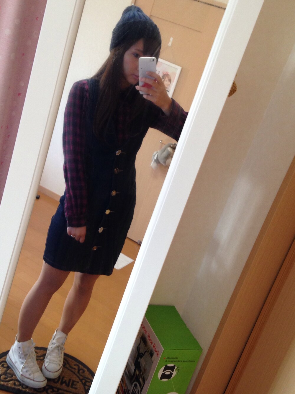 今日は3限までなので楽ちんコーデです(o^^o) 私の身長には半端な丈のタイトスカートとハイカットなので足が更に太く見えますが、やっぱりこの組み合わせが好きです😂